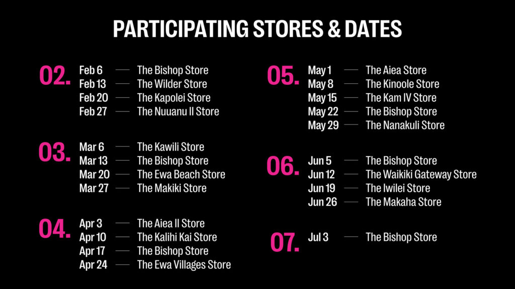 - See the schedule below for participating stores and dates
