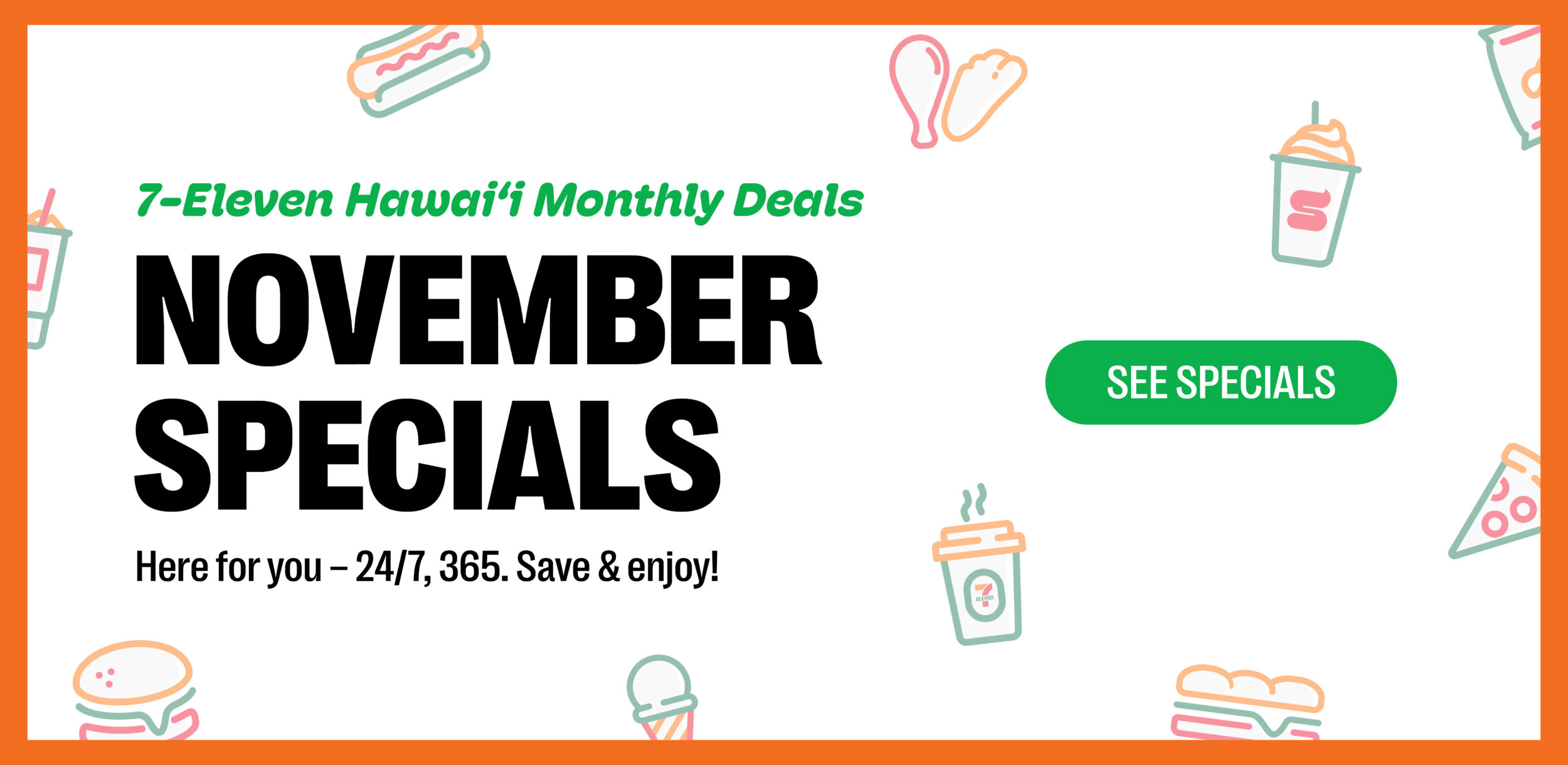 We also love to surprise you with new products every Tuesday at all of our locations across the Islands. Plus, we have special promotions just for our local community. Whether it’s monthly specials on popular items or exclusive deals during our anniversary, there’s always something exciting happening at 7-Eleven Hawaiʻi.