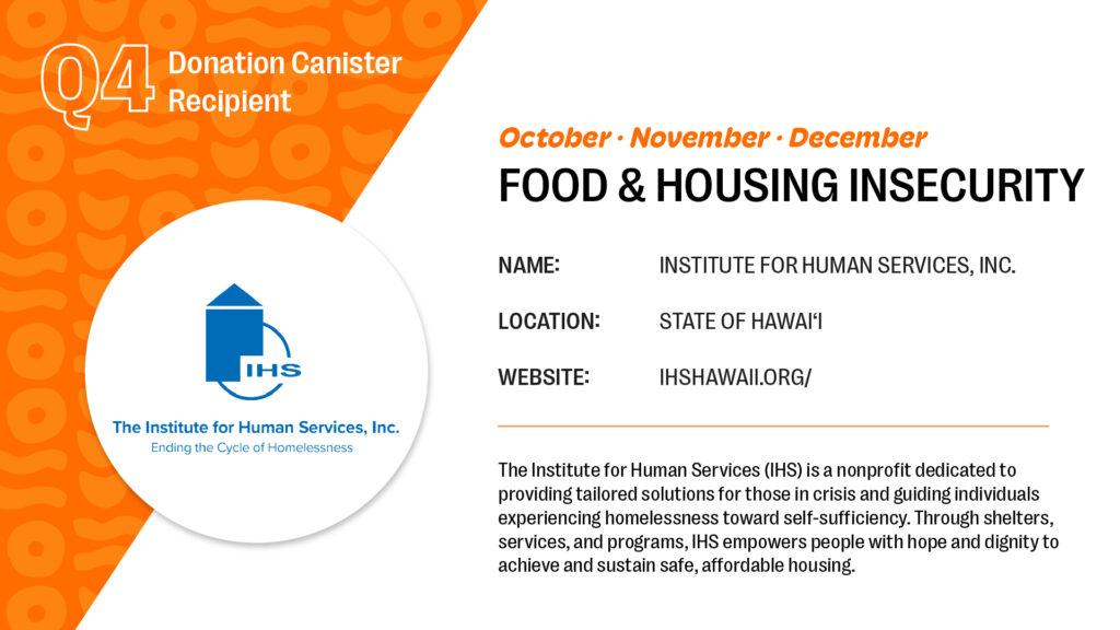 Founded in 1978, IHS is a Hawai‘i-based 501(c)(3) nonprofit dedicated to supporting individuals and families experiencing houselessness. Through urgent care, innovative programs, and long-term support, IHS collaborates with government, business, and community partners to create pathways toward stability and hope.